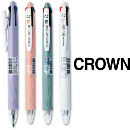 크라운 바이트 클립 4색 볼펜은 빨강, 파랑, 검정, 초록의 잉크 색상을 한 제품에서 사용할 수 있습니다. 다기능적인 구성은 볼펜판촉물로 활용 시 고객의 관심을 끌기에 적합합니다.