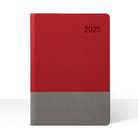 - 이 다이어리는 세련된 레드와 그레이 컬러 조합으로, 모던한 감각을 강조합니다.
