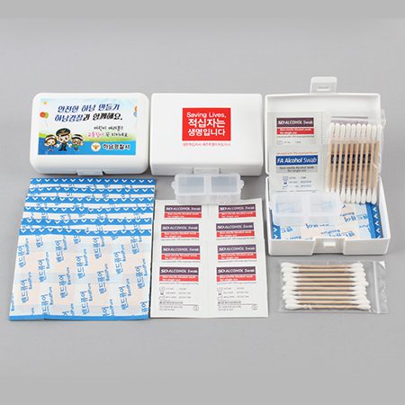 - 구급함판촉물에 적합한 구성: 반창고, 면봉, 소독 패드 등 응급상황에 필요한 필수 용품 포함.