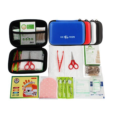 총 12가지의 응급 용품이 포함되어 있어 기본적인 응급처치가 가능합니다. 반창고, 소독 티슈, 가위 등 필수 용품이 포함되어 있어 실용성이 뛰어나며, 구급함판촉물로도 많은 인기를 끌고 있습니다. 🩹