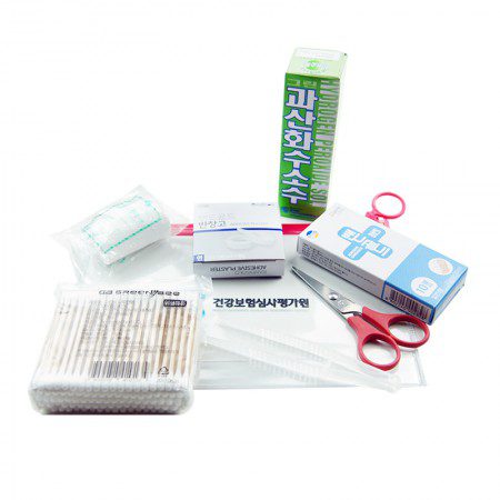 - 과산화수소, 일회용 반창고, 가위, 핀셋 등 필수 구급용품 8종이 포함되어 있어, 응급 상황에 필요한 기본적인 용품을 제공합니다.